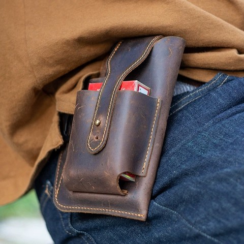 Bolsa universal de couro para celular, processo de produção em couro de cavalo louco, item da moda retrô versátil para homens e mulheres
